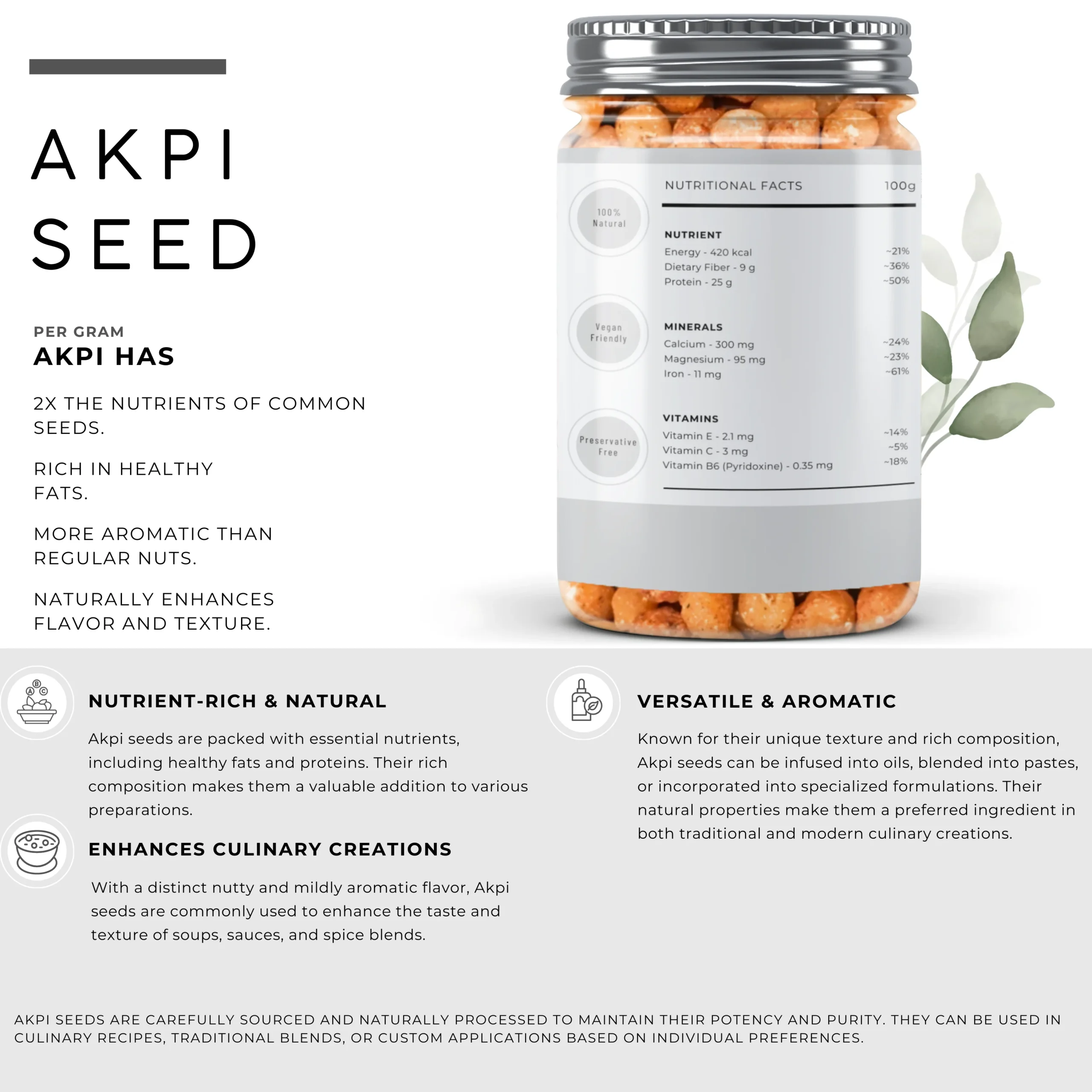 Akpi Seeds, also known as Djansang or Ricinodendron heudelotii, are aromatic seeds widely used in West and Central African cooking. These naturally dried seeds add a rich, nutty flavor to a variety of dishes including soups, stews, and sauces. Ideal for traditional recipes and culinary exploration.