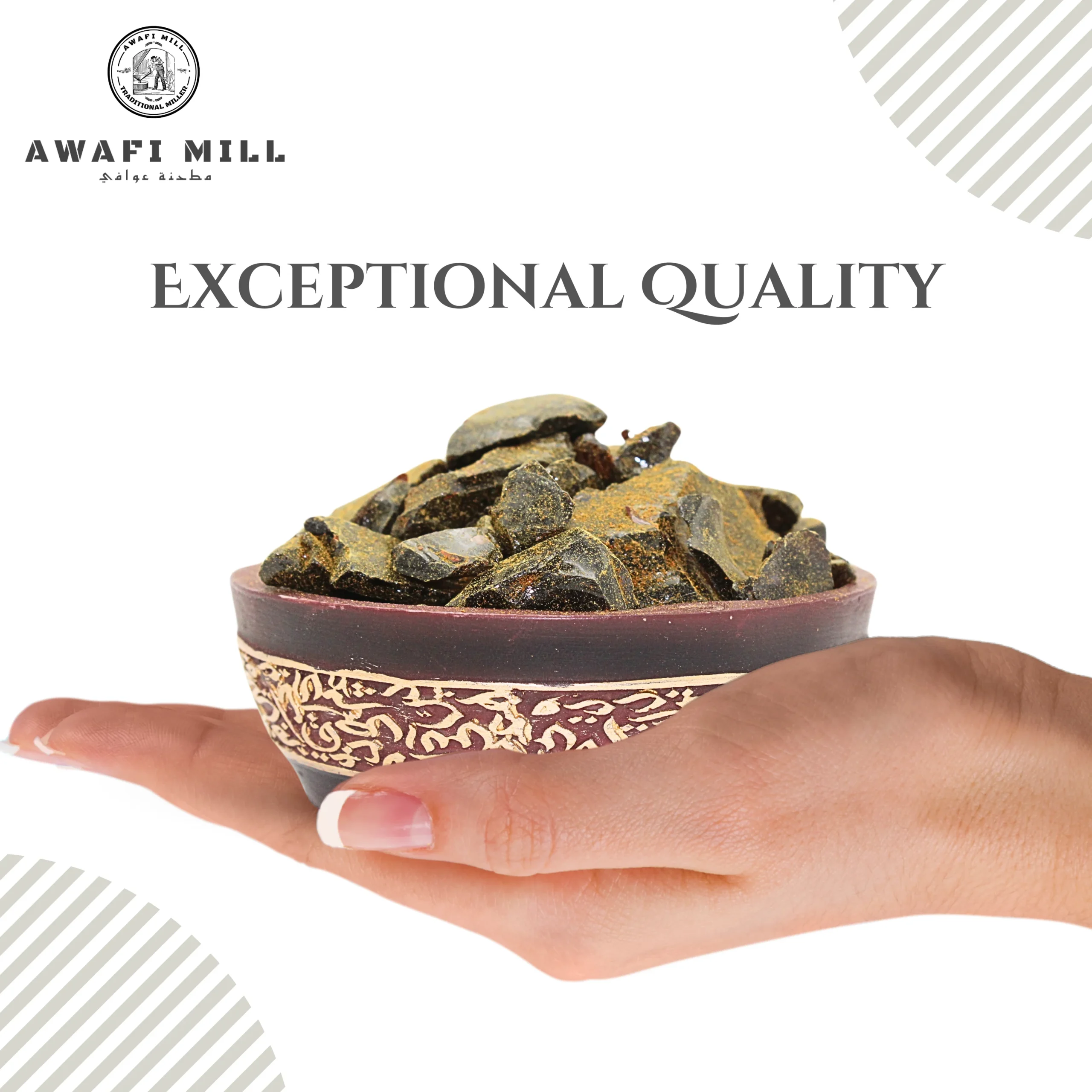 Awafi Mill Aloe Vera Gum, also known as Musambaram, is a dried, natural exudate of the aloe plant. Known for its bitter, earthy taste, it’s traditionally used in powdered form for various herbal preparations.