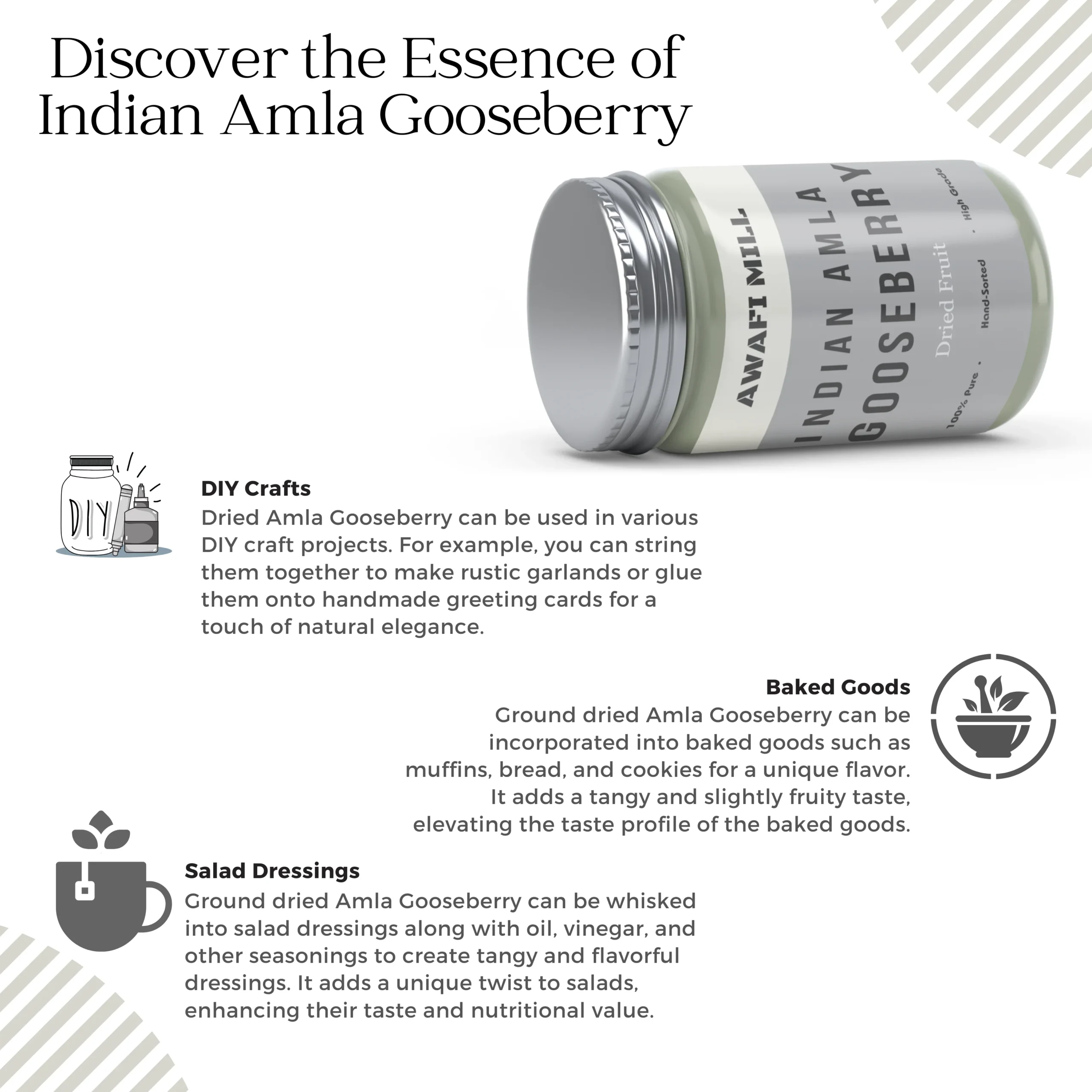 Awafi Mill Amla, also known as Indian Gooseberry (Phyllanthus emblica), is prized in traditional practices for its natural tangy taste and versatile use. Perfect for herbal infusions, pickles, chutneys, or wellness blends, this fruit is valued for its distinctive flavor and heritage significance.