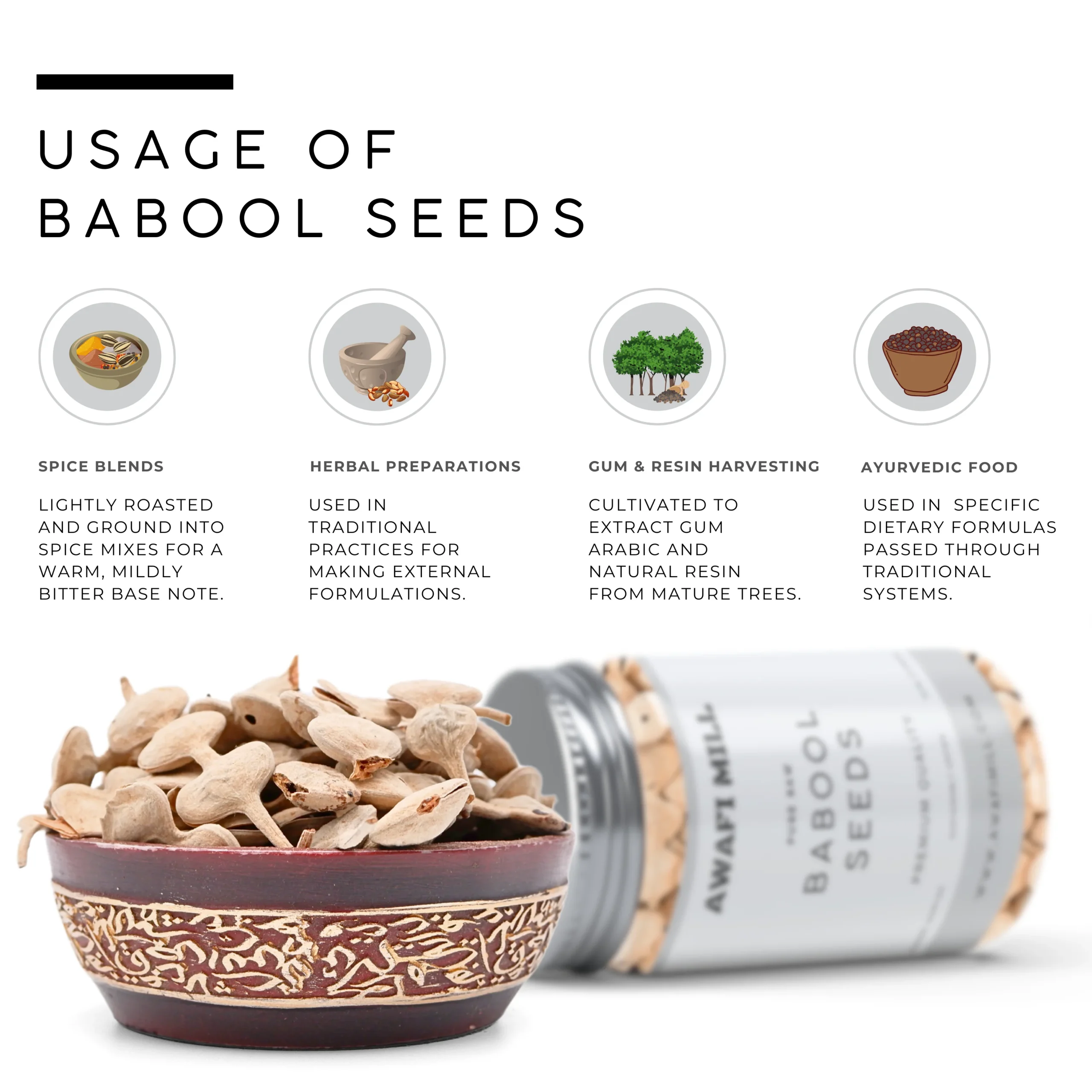 Awafi Mill Babool Seeds are harvested from the hardy Babul (Kikar) tree and naturally sun-dried. Commonly used in organic practices, traditional remedies, and soil-enriching agricultural applications.