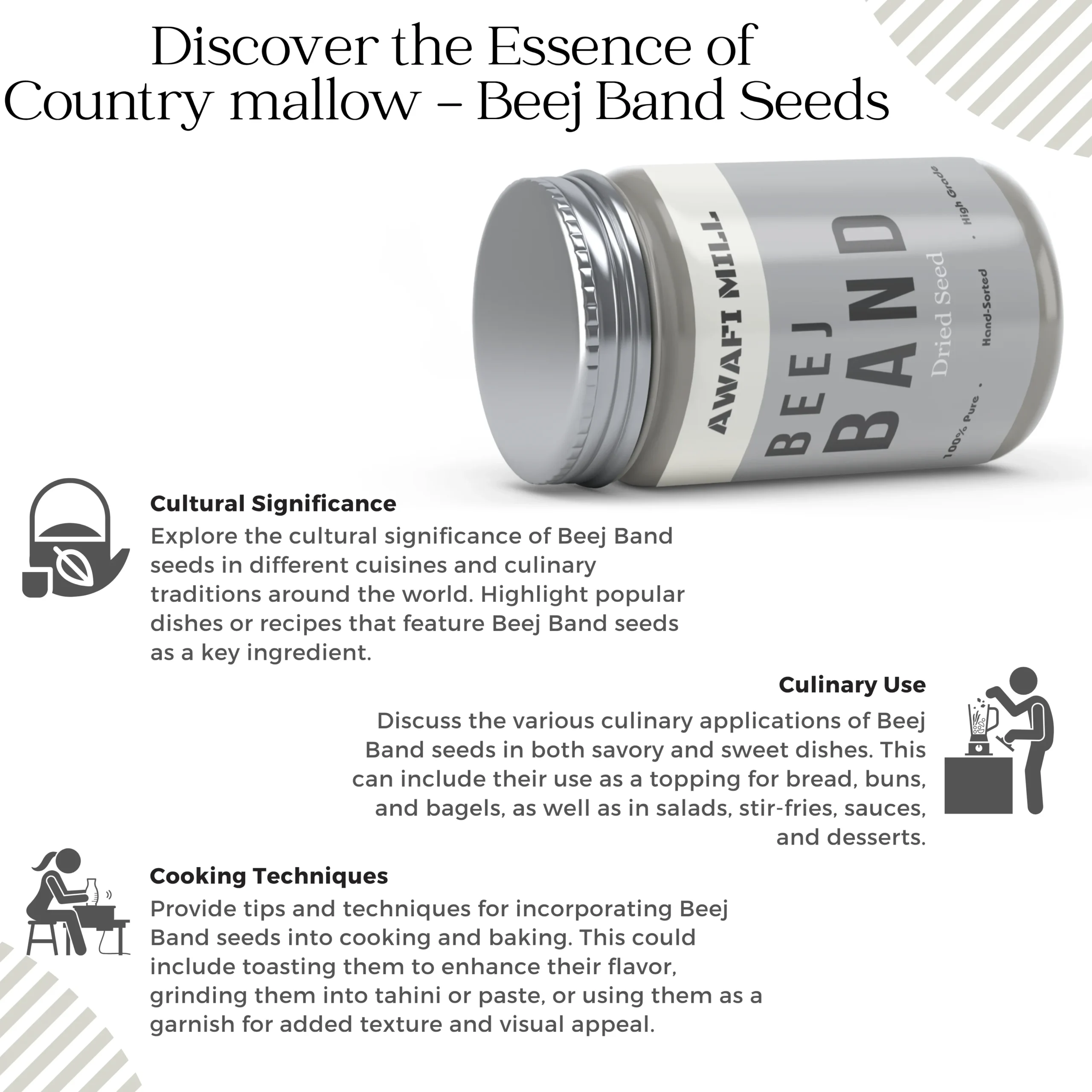 Beej Band, also known as Mallow Seed, is a naturally sourced seed used in various traditional applications. Carefully dried and cleaned, these whole seeds are ideal for mixing with herbal blends or infusions. Valued for their versatility and heritage use.