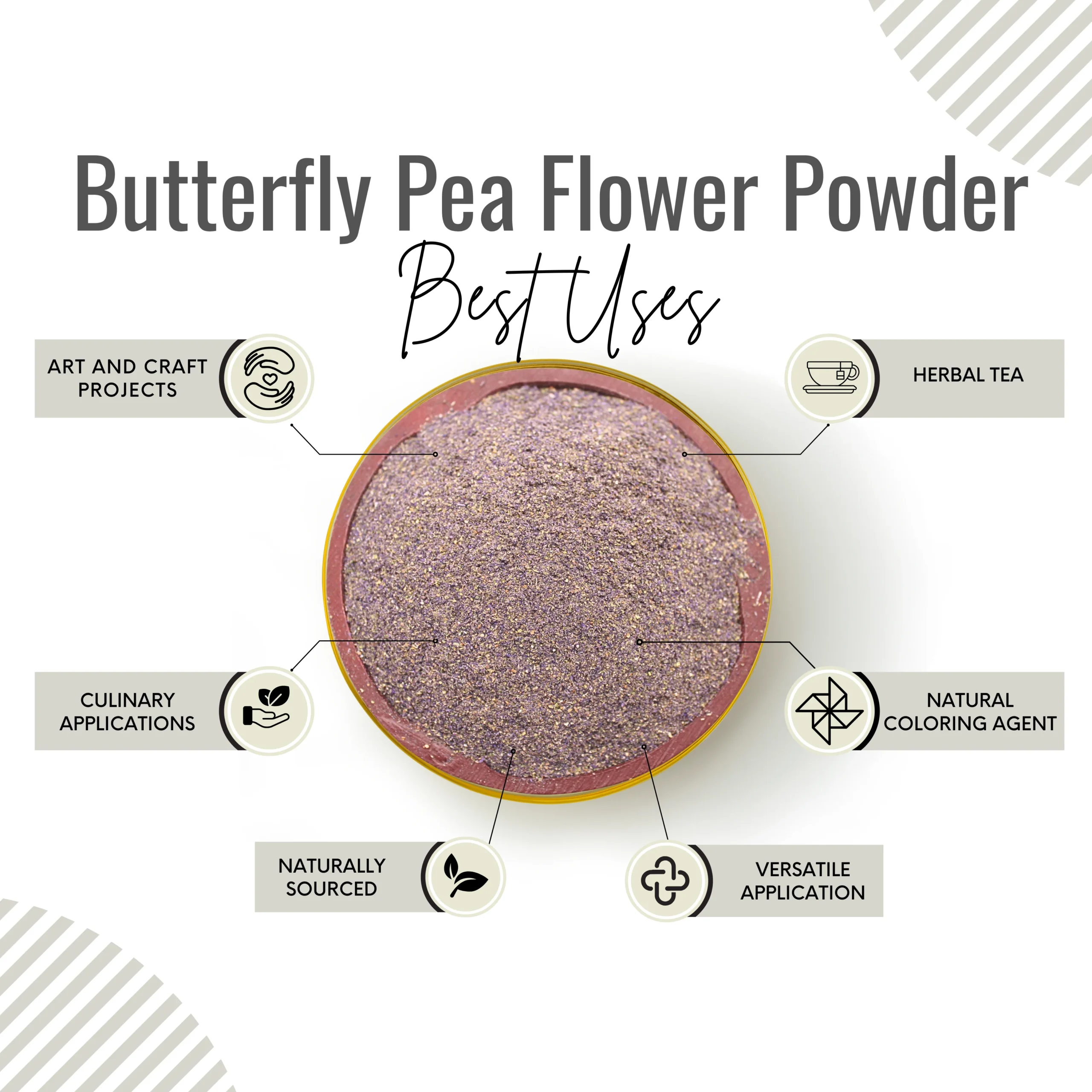 Used in herbal teas, natural coloring, and skincare blends