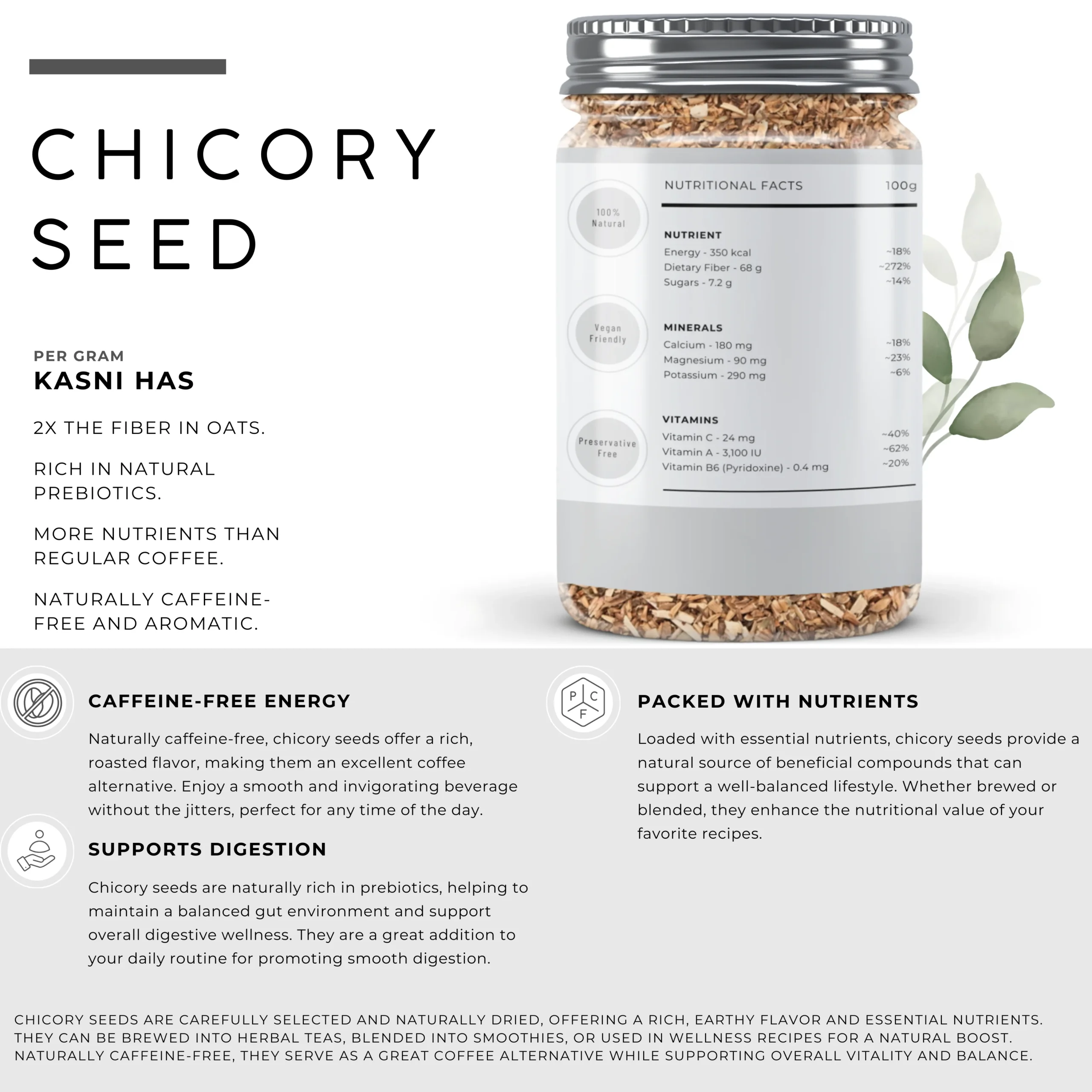 Chicory Seeds, also known as Kasni Seeds, are harvested from the Cichorium Intybus plant. These seeds are carefully dried and cleaned, making them suitable for use in traditional recipes, roasting applications, or botanical study. Offered in whole form for versatile use.