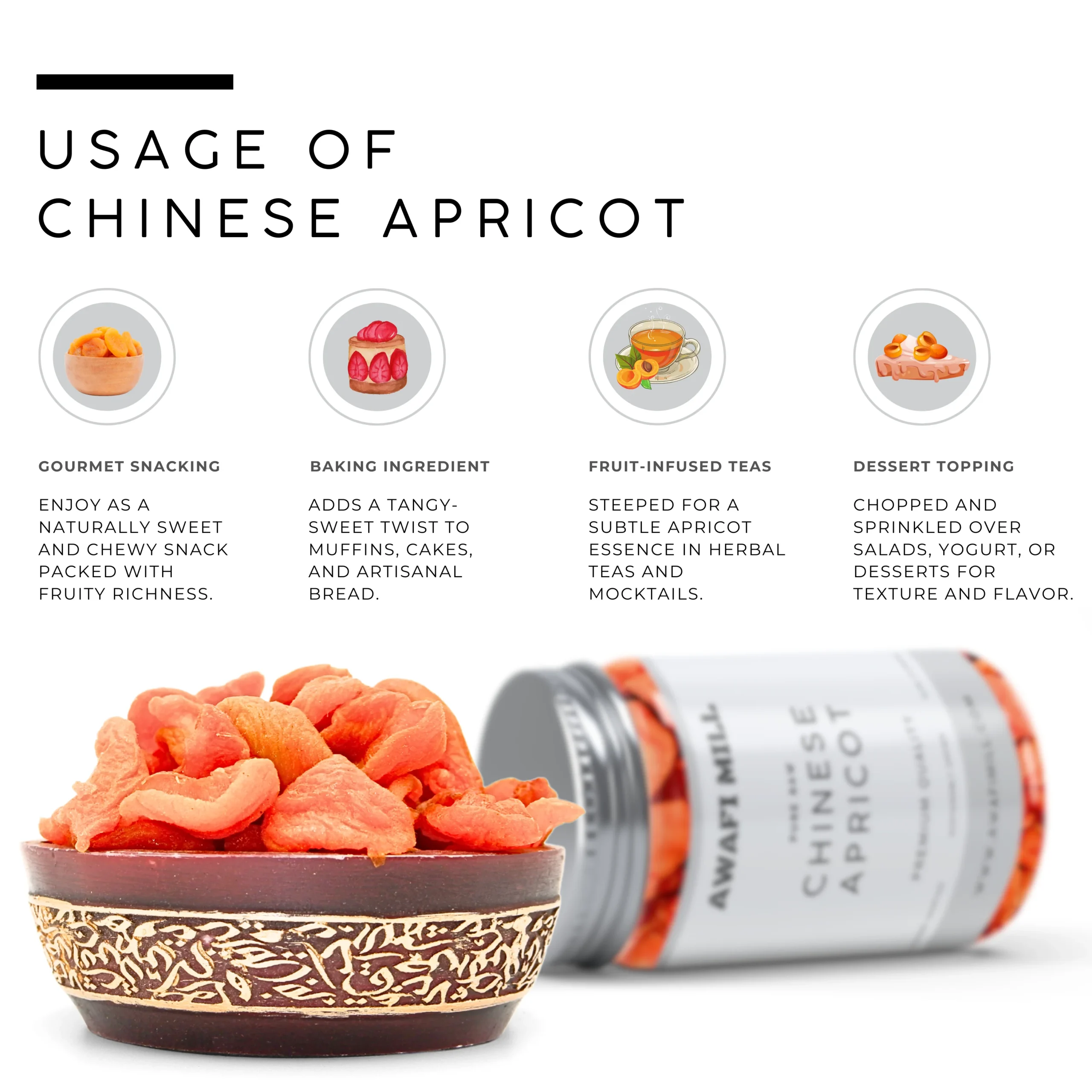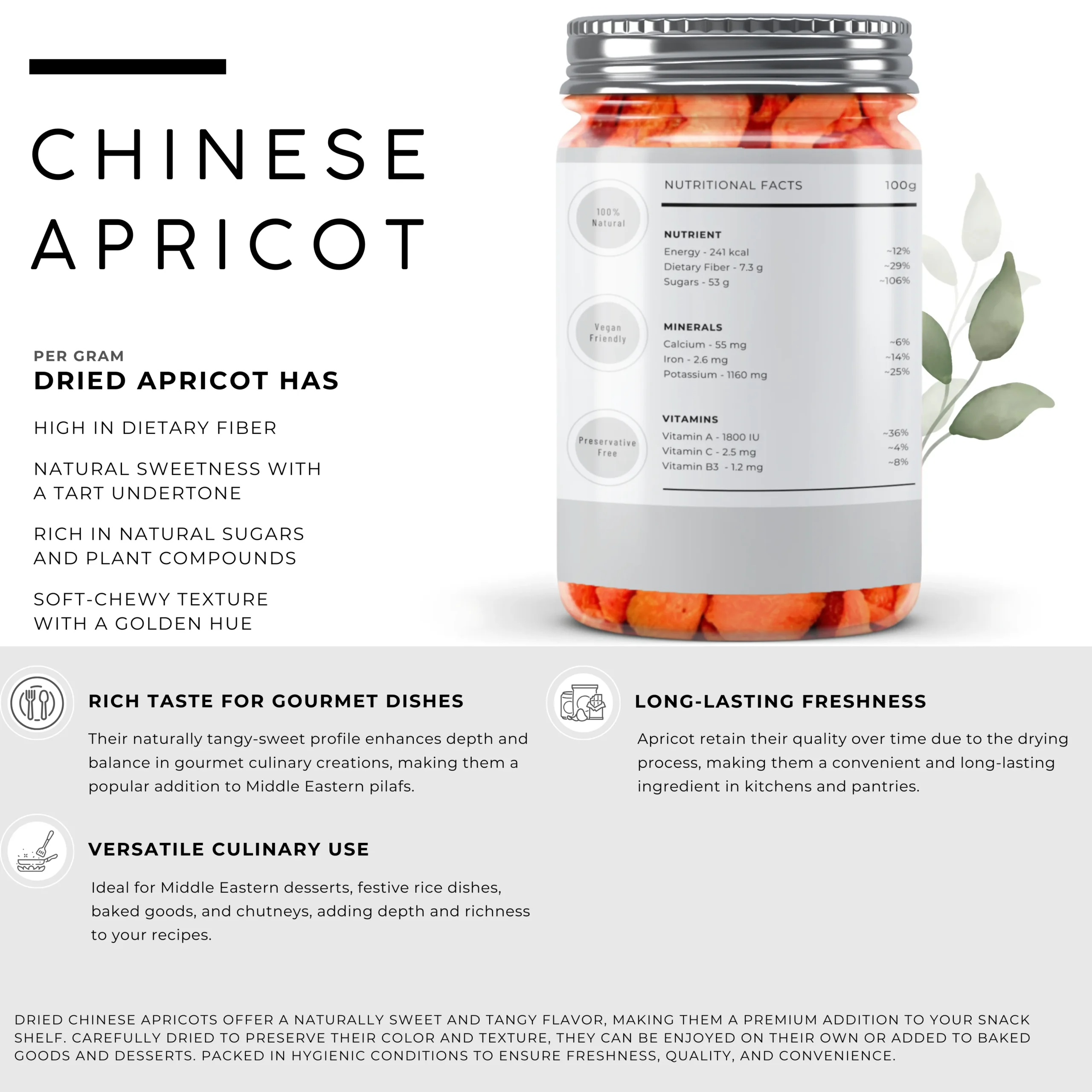 Awafi Mill Chinese Apricot Fruit is carefully sun-dried to preserve its bright color, chewy texture, and naturally sweet-tart flavor. Perfect for healthy snacking, adding to baked goods, blending into herbal teas, or enjoying as a versatile ingredient in both sweet and savory dishes.