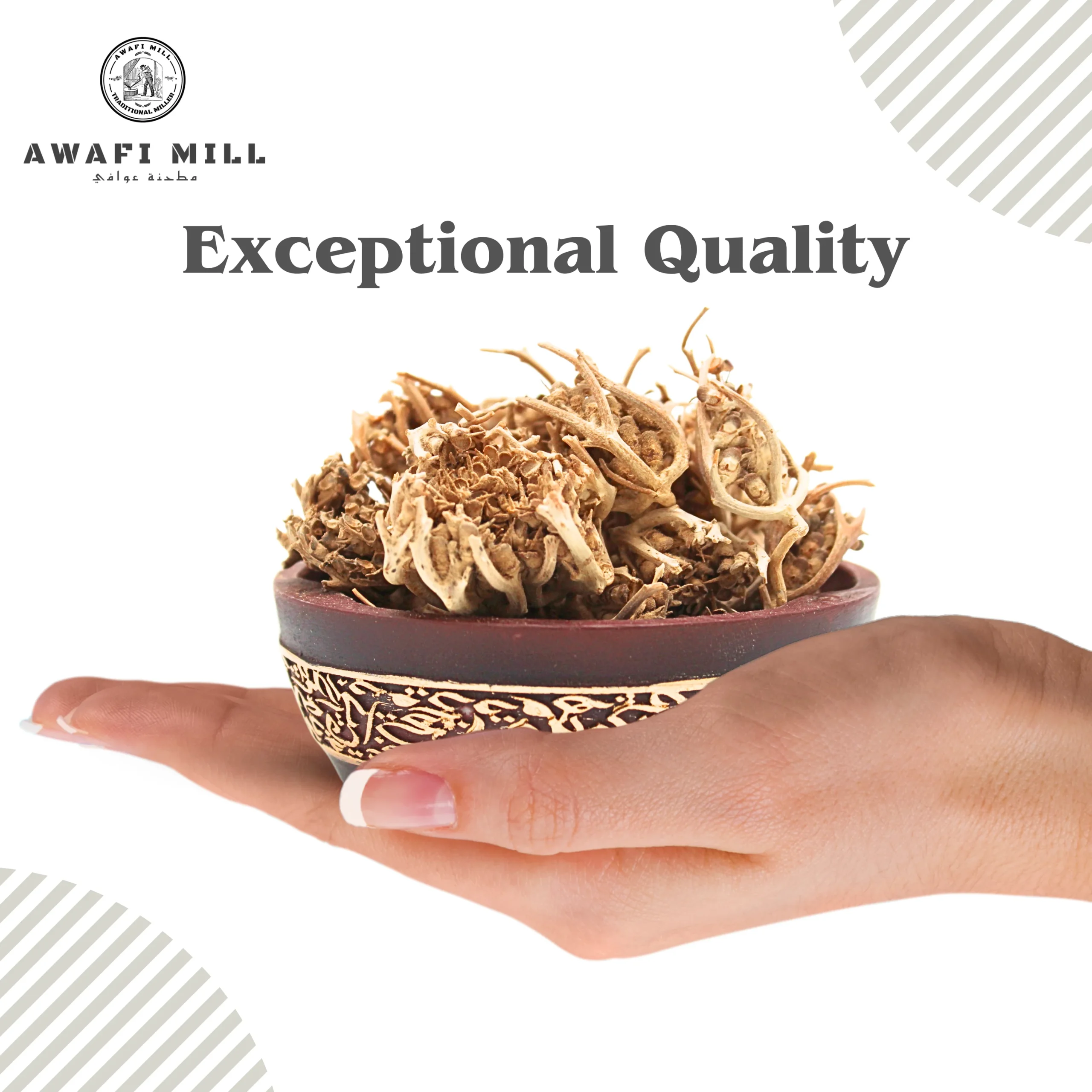 Awafi Mill Jericho Rose, also known as Chajarat Mariam, is a unique desert plant that curls into a dry ball and unfolds when placed in water. Revered for its symbolism of rebirth and blessings, it is often used in spiritual rituals, cultural displays, and as a natural decorative element. 100% natural and reusable.