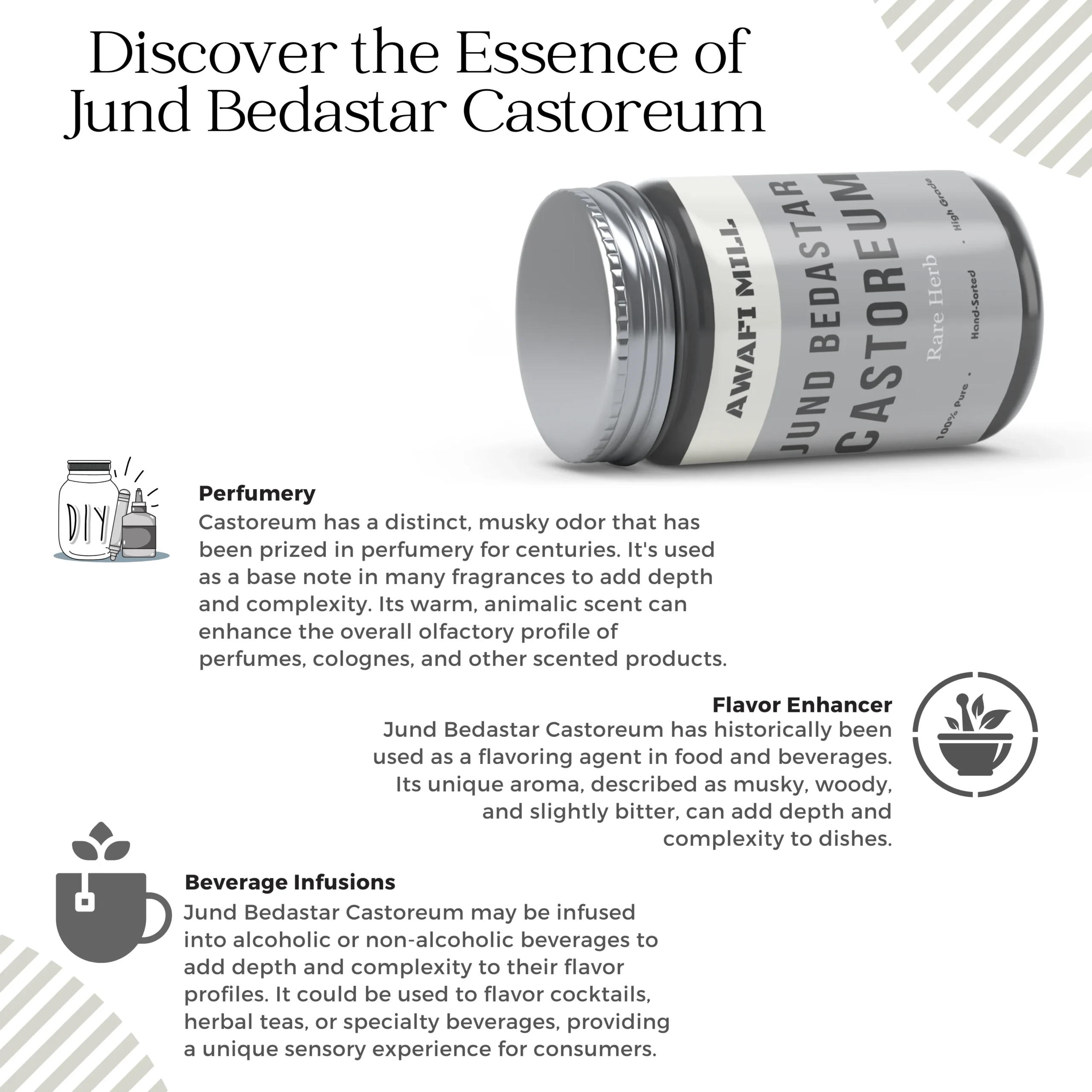Awafi Mill Jund Bedastar, also known as Castoreum, is a rare and historically significant resin derived from traditional sources. Deeply aromatic with a bold, musky profile, it has long been valued in perfumery, incense, and cultural rituals. Our offering preserves its raw authenticity, ideal for natural fragrance blending and artisanal use.