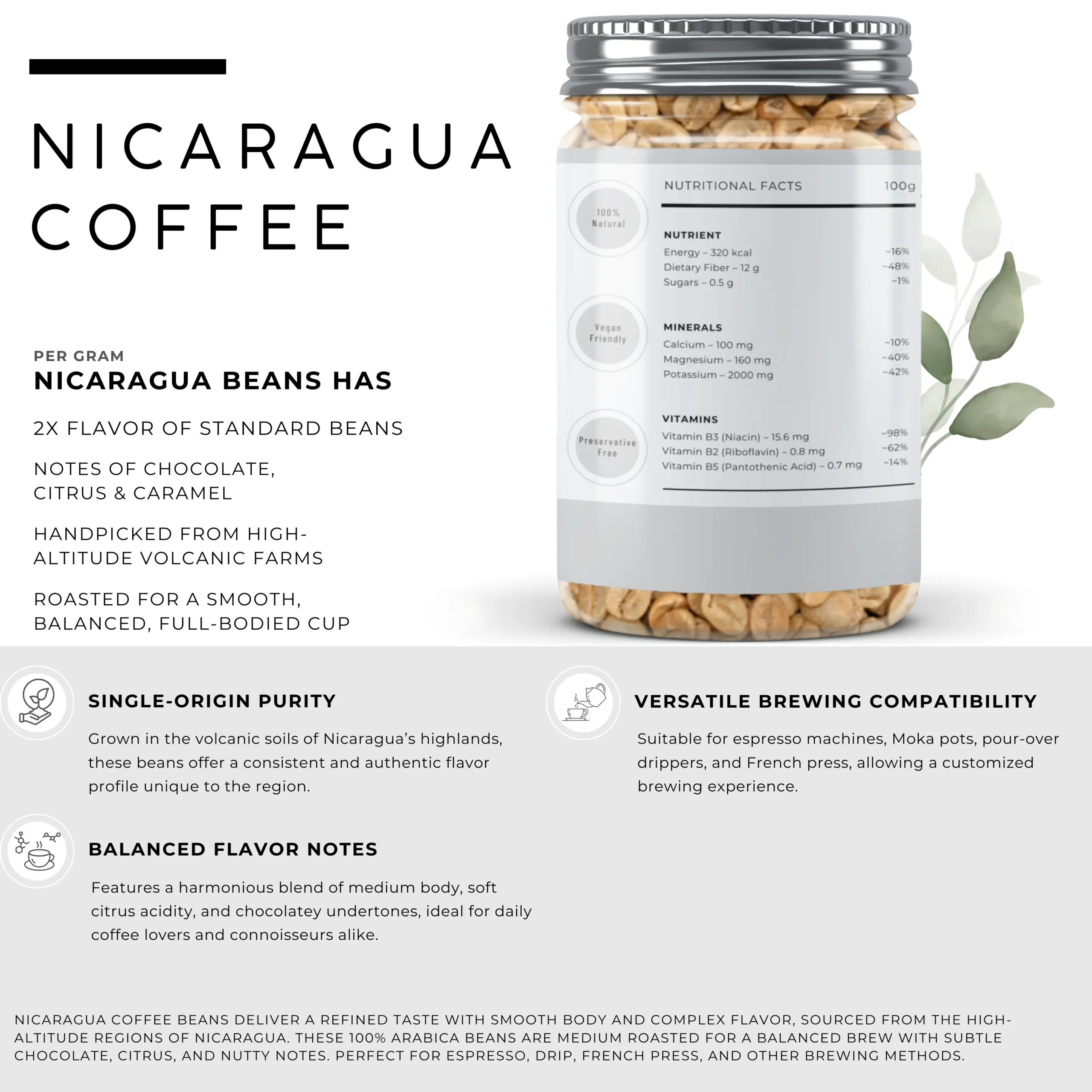 Awafi Mill Nicaragua Coffee Beans are premium-grade Arabica beans, carefully sourced and sun-dried for full-bodied flavor. Ideal for coffee lovers seeking a balanced, aromatic cup with a refined finish.