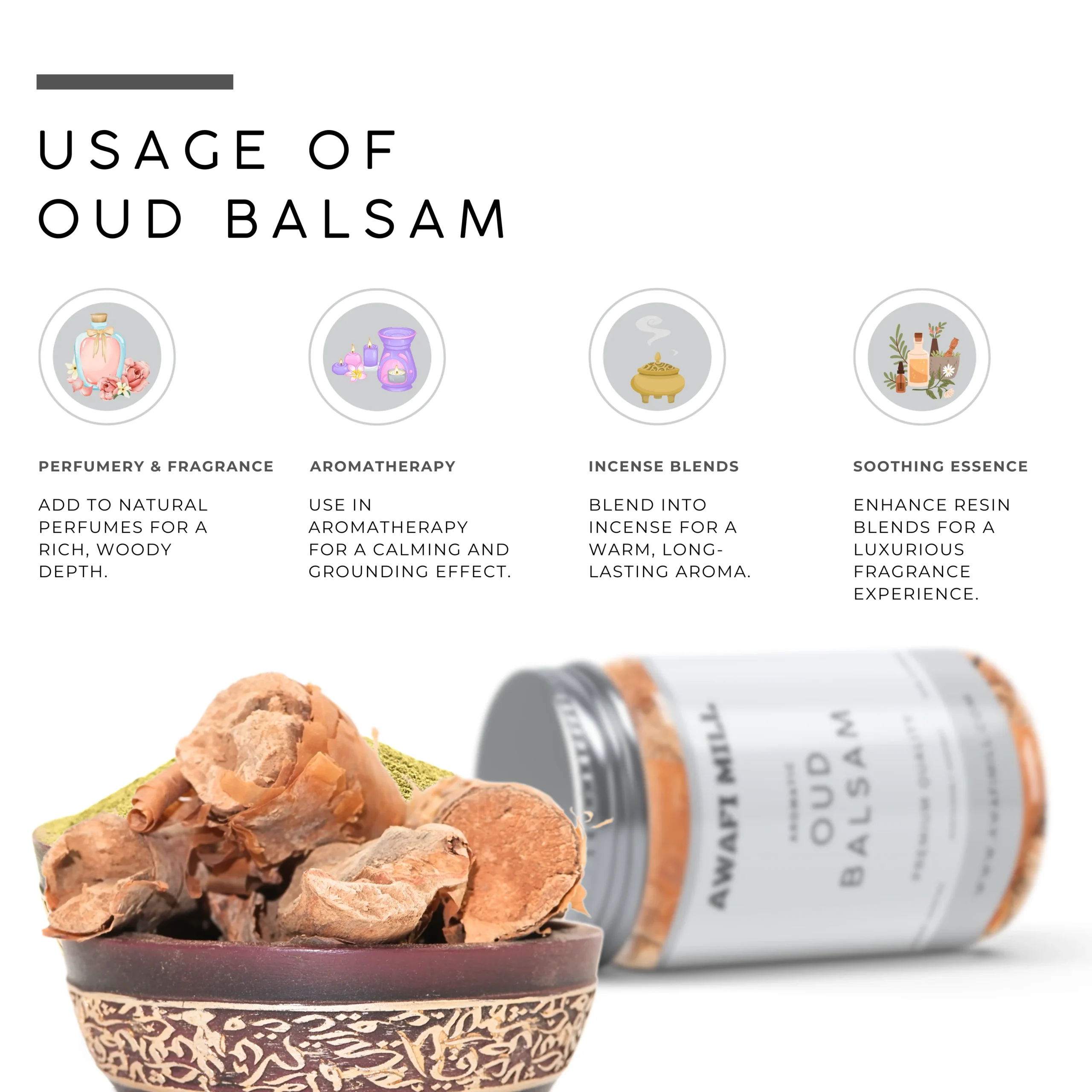 • Used in incense rituals, bakhoor, and aromatic experiences