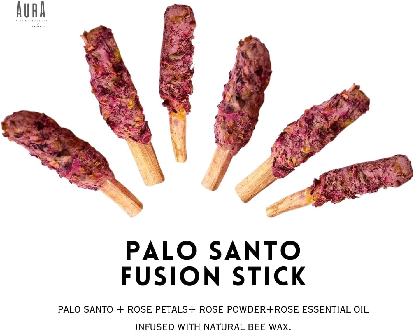 Aromatic fusion of Palo Santo wood and dried rose petals