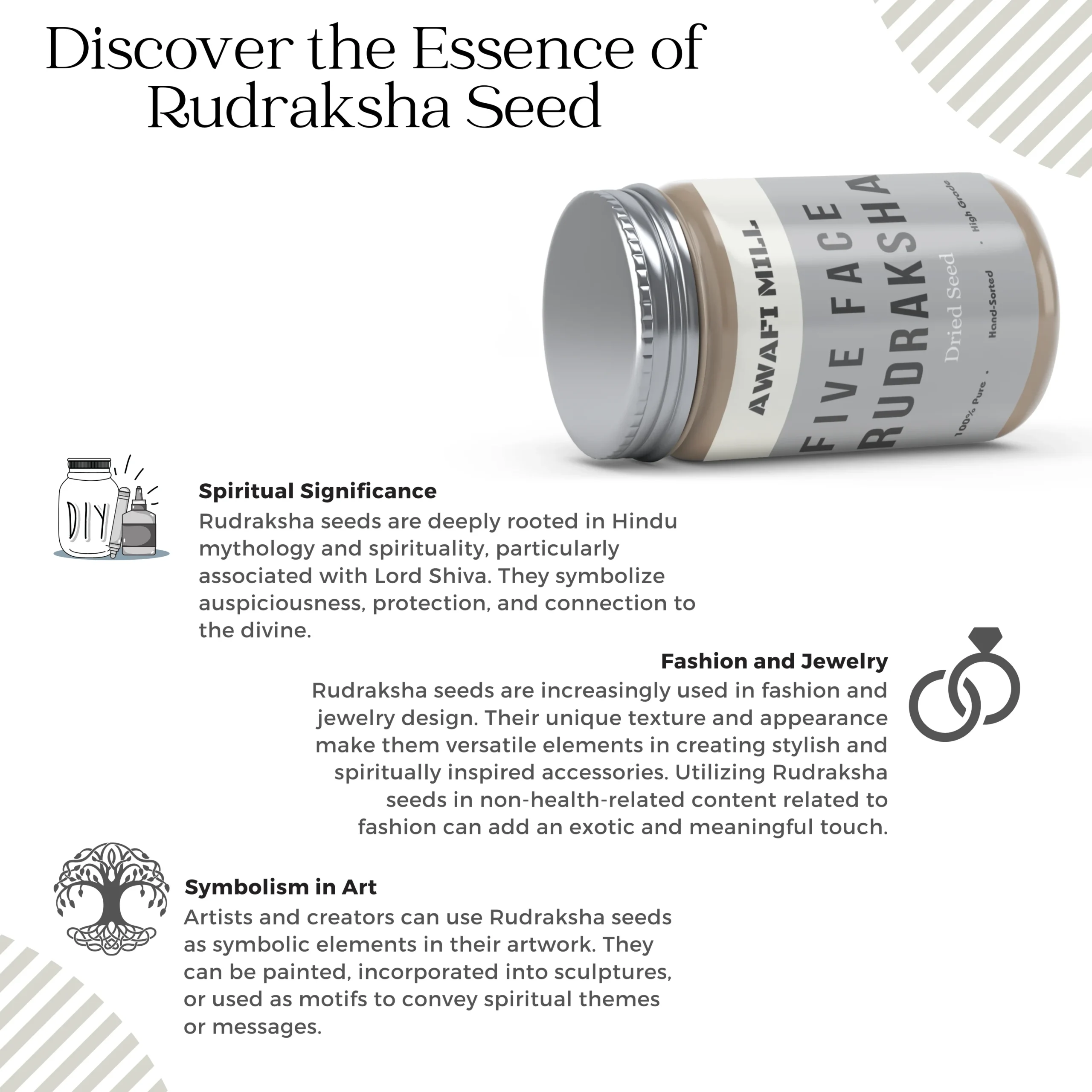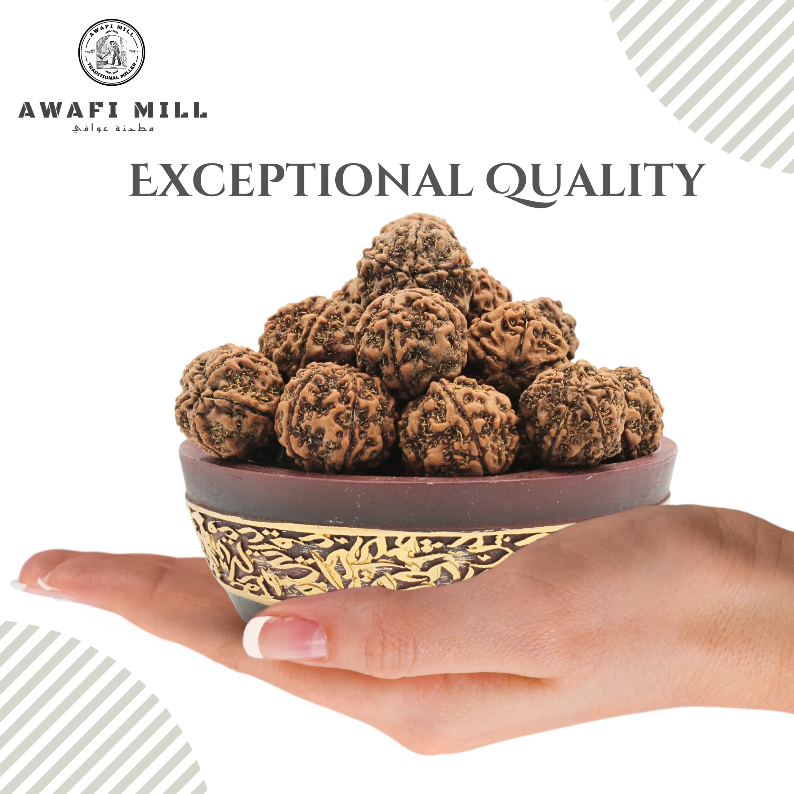 Awafi Mill Rudraksha Beads are sacred seeds known for their spiritual significance. Commonly used in malas and meditation rituals, these beads are valued for enhancing focus, calm, and spiritual connection.