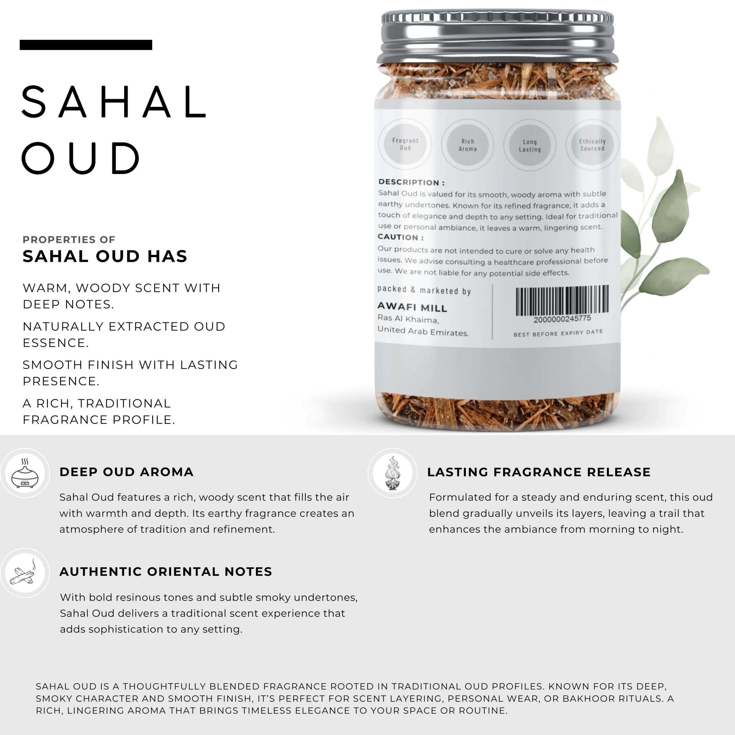 Awafi Mill Sahal Oud offers premium-grade agarwood chips known for their intense fragrance and slow, aromatic burn. Ideal for traditional incense use, special occasions, or daily home rituals.