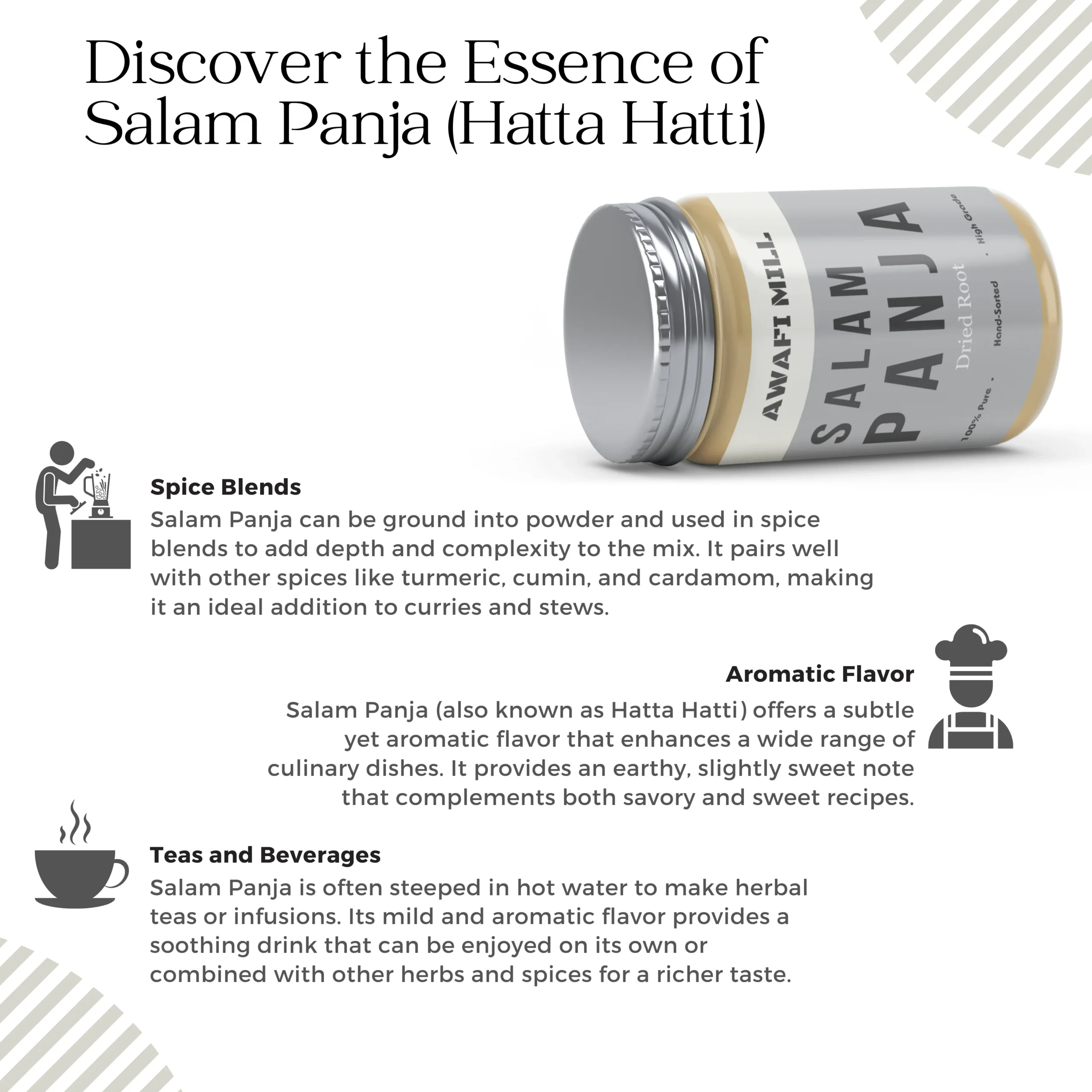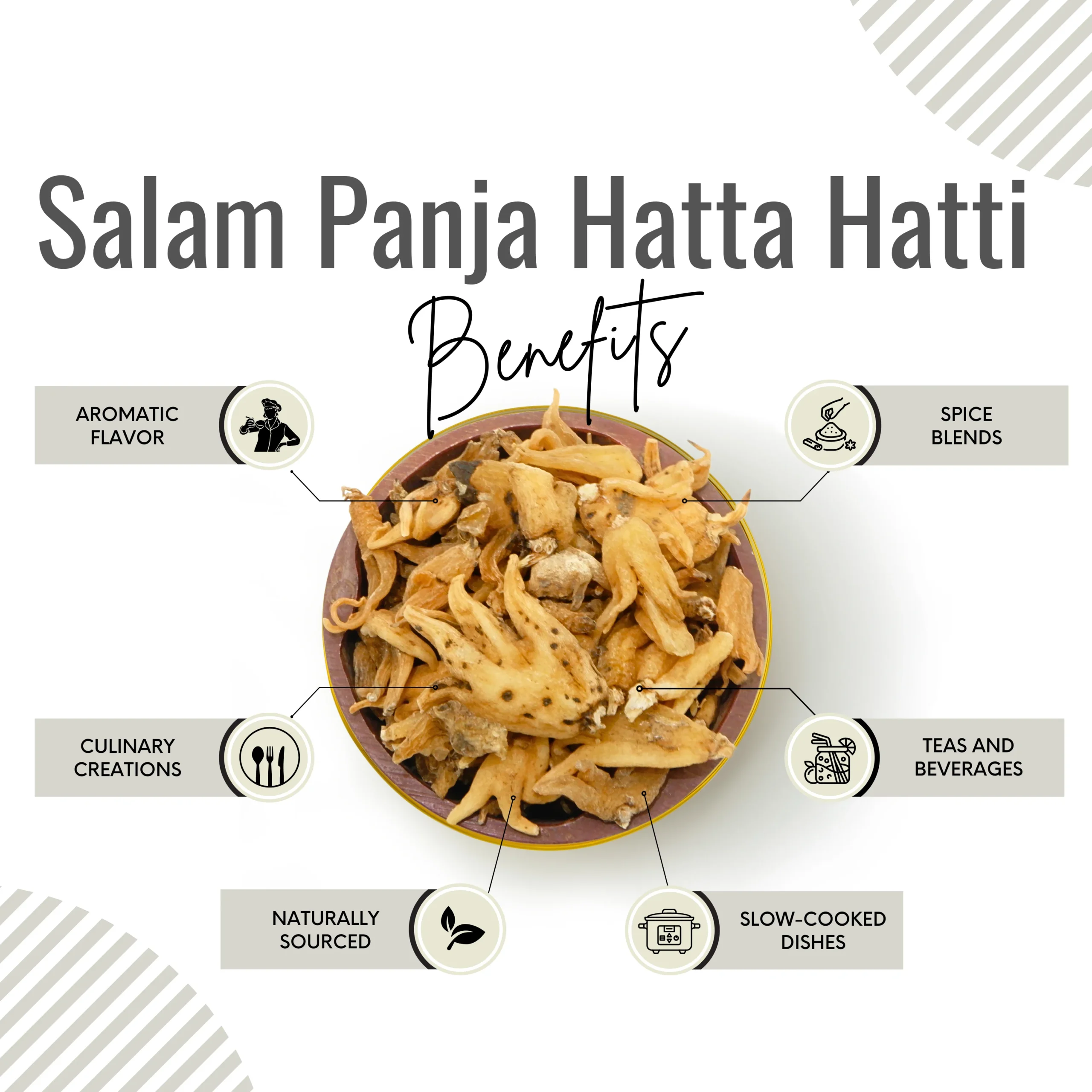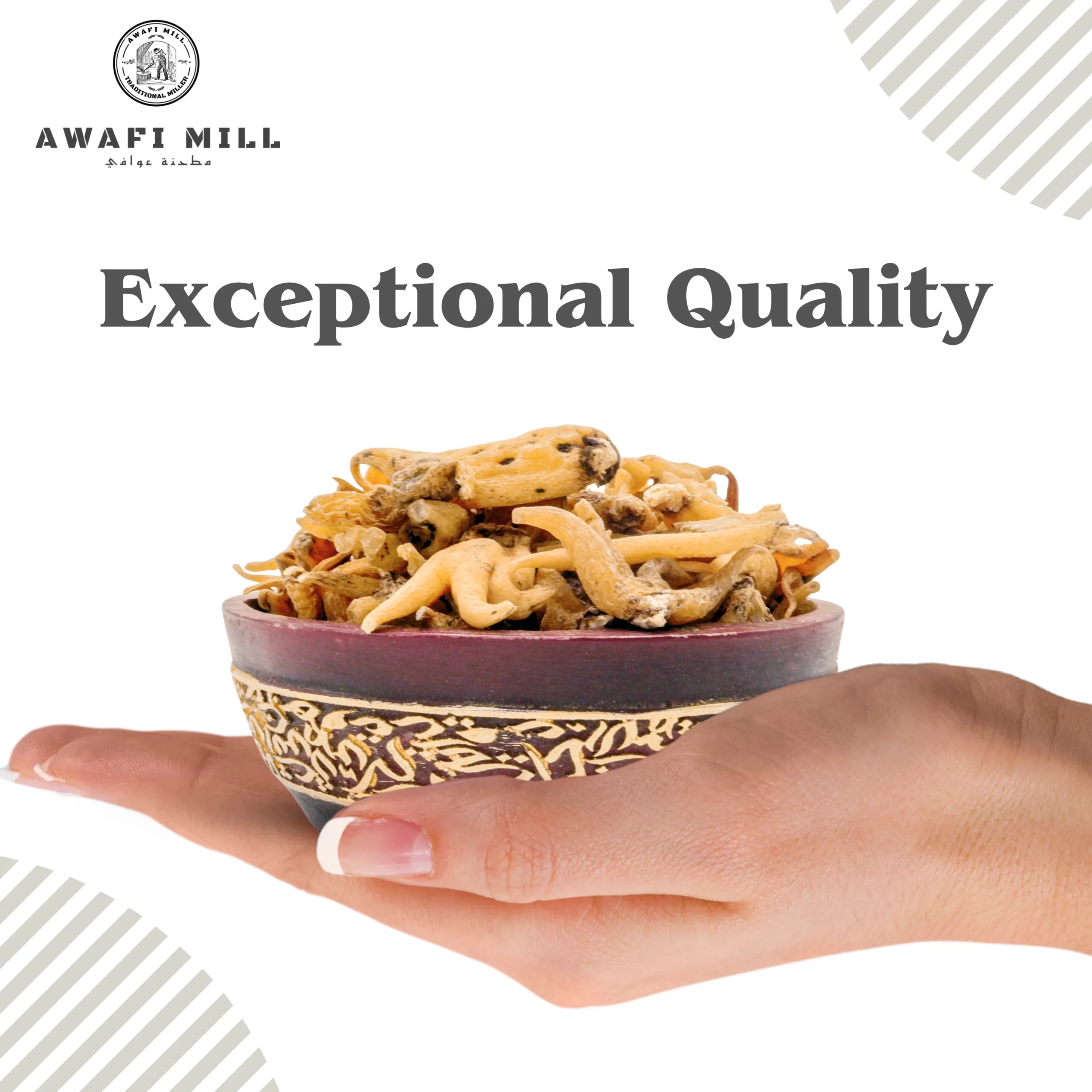 Awafi Mill Salam Panja, also known as Hatta Haddi or Dactylorhiza hatagirea, is carefully harvested and naturally dried to preserve its firm structure and earthy aroma. Valued in traditional practices, this root is often used in wellness blends and cultural herbal preparations.