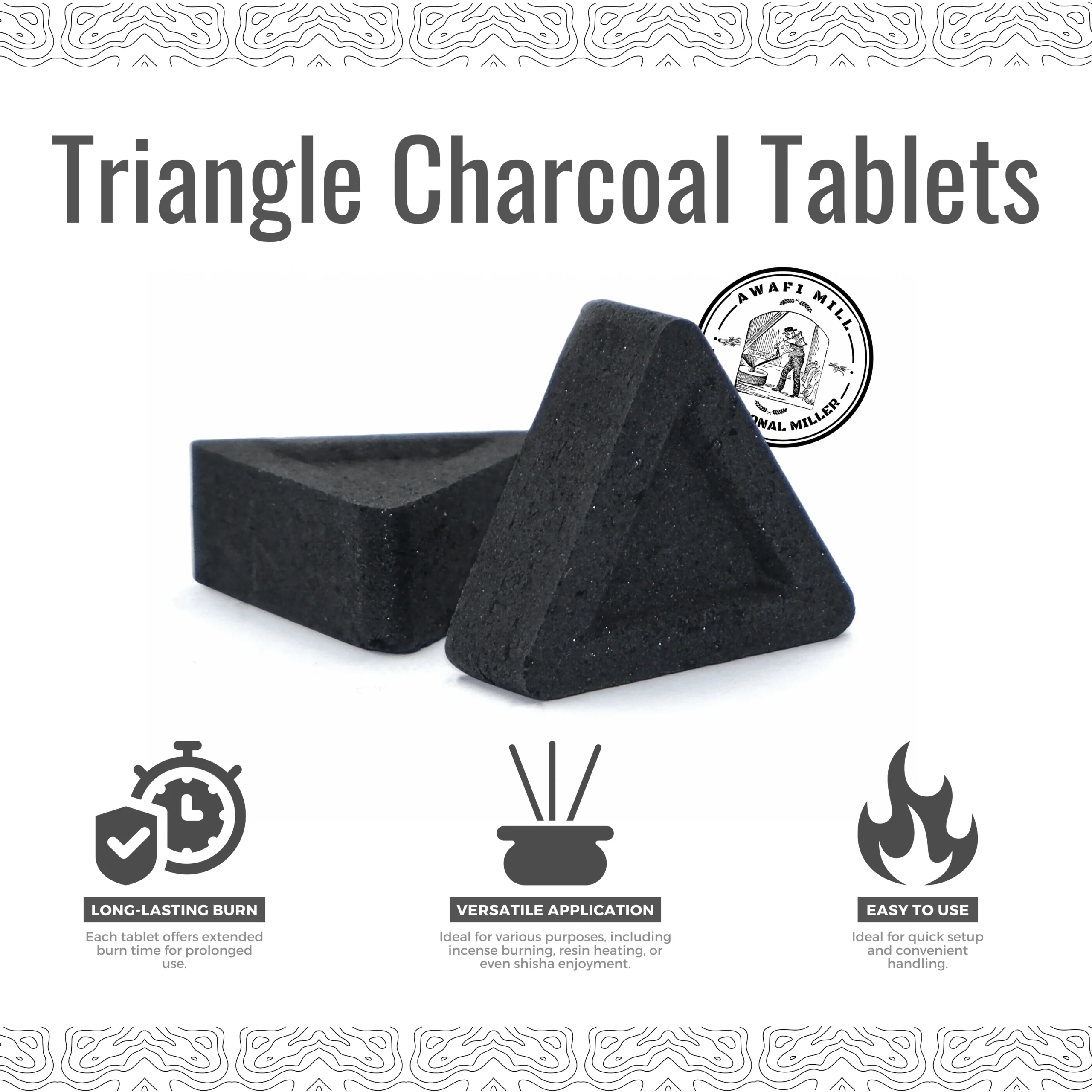 Awafi Mill Triangle Charcoal offers a unique and stable design ideal for incense rituals. It ignites easily and provides even heat, making it perfect for burning bakhoor, frankincense, or herbal resins cleanly.