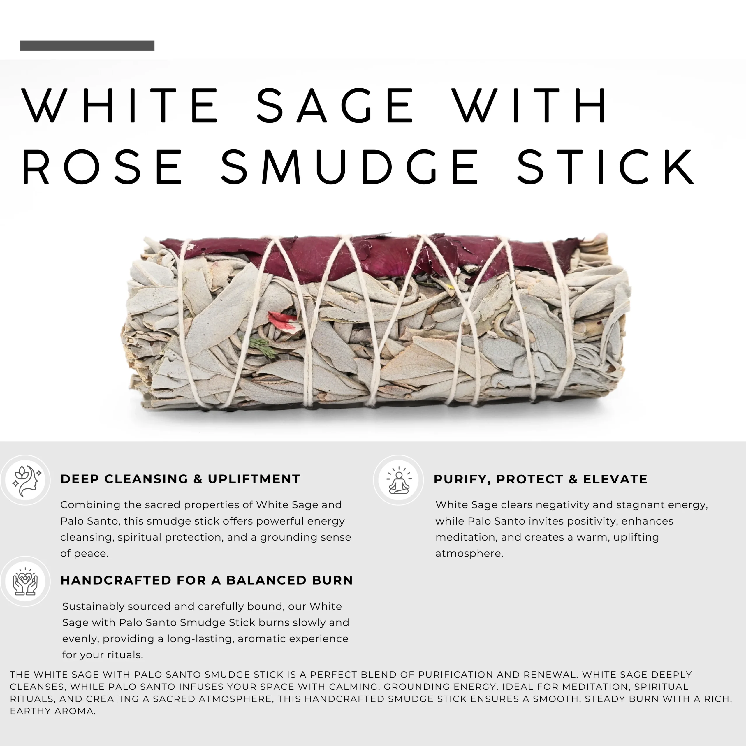 White Sage with Rose Smudge Stick