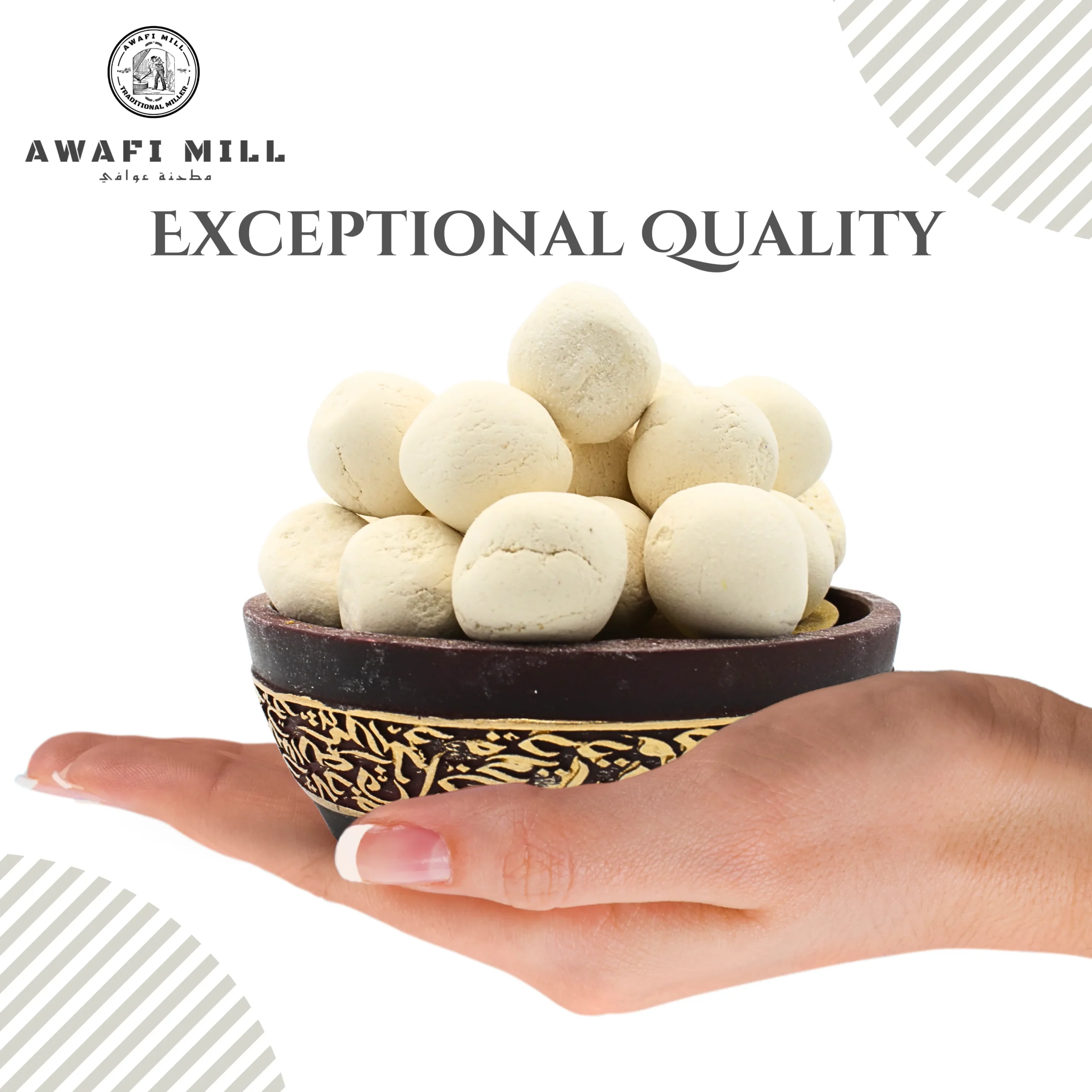 Awafi Mill Yogurt Hard Cheese Stone, known as Laban Kishk or Kurut, is made from sun-dried fermented yogurt. These hard cheese stones offer a bold, savory flavor used in warm dishes across Central Asia and the Middle East.