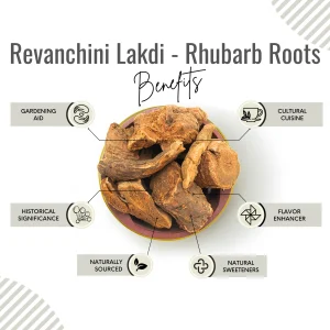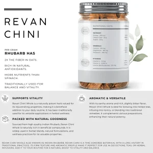 27,50 د.إ – 106,25 د.إPrice range: 27,50 د.إ through 106,25 د.إWhole pieces of rhubarb root (Revanchini Lakdi / Revand Chini) Earthy, mildly tangy aroma with firm texture Used in traditional herbal blends and wellness preparations -
